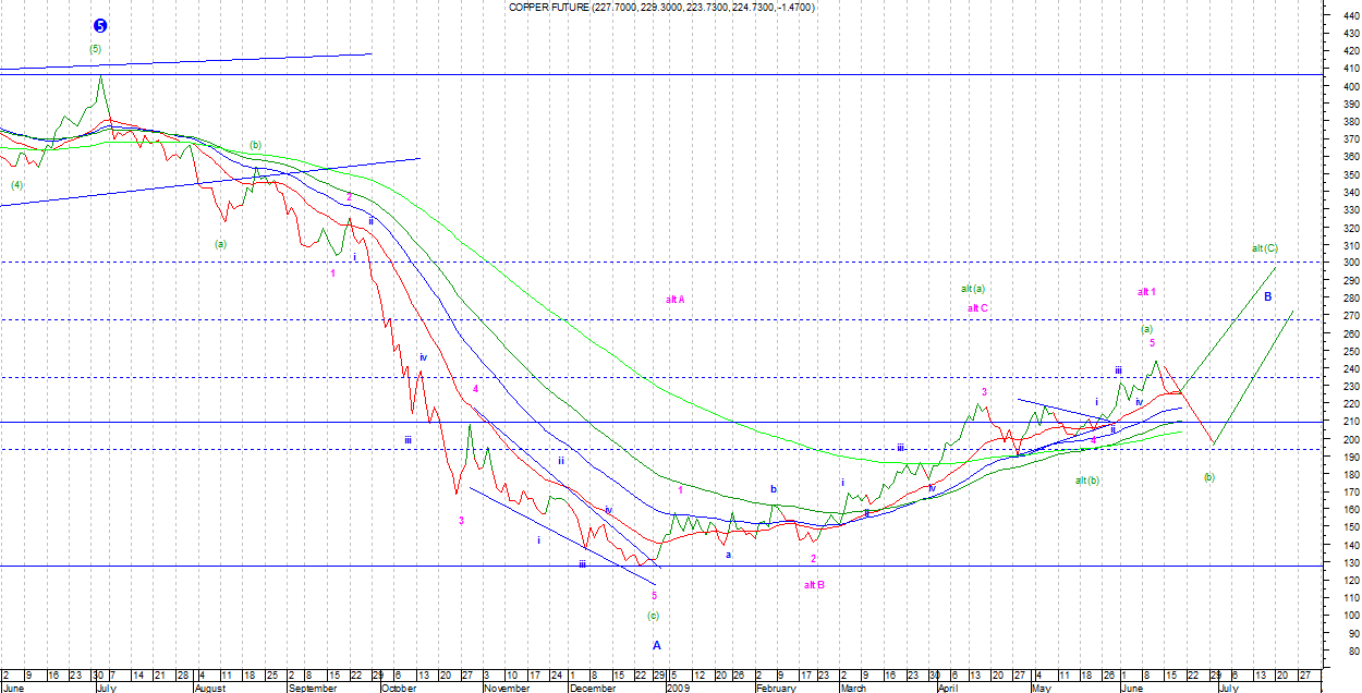 Na COPPER jeżeli oznaczony trójkąt był podfalą 4 Minor to powinniśmy kontynuować spadki w ramach fali (b). Alternatywnie, jeżeli był podfalą (b), to czeka nas silny ruch w górę w ramach podfali (c) – konkretnie 3 w (c).