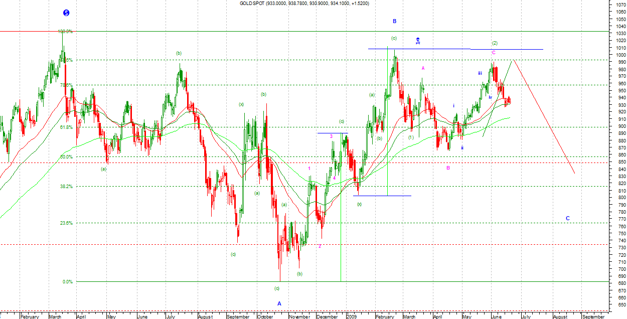 CRUDE (interwał weekly i EOD, 60 min):Nie zawróciliśmy więc zwykły Zigzag odpada . Pozostaje Elongated ale tam nie ma jak wyznaczyć zasięgu bo fale w takim Zigzagu z reguły nie wchodzą w relacje Fibonacciego, lub wydłużona piątka z zasięgiem 80 USD. EZ mógł skończyć się na ostatnich szczytach ale nie sądzę bo Crude na tyle zerwała przyczepność, że chwilowo nie zachowuje tradycyjnej odwrotnej korelacji z USD. Na wykresie 60 min rozpisałem fale do stopnia Sub Minuette. Widać wyraźnie równość fali pierwszej i trzeciej (choć ta druga prawidłowo minimalnie dłuższa). W takim wypadku należy spodziewać się wydłużonej piątki. Zejście poniżej fali 4 Minuette zakończy impuls wzrostowy.