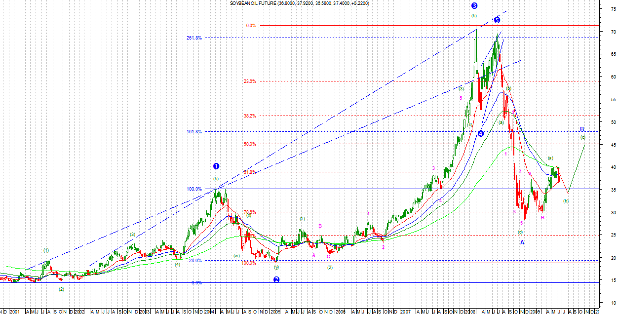 Na SOYAOIL zejście w zakres fali iv poprzedzającego obecne spadki impulsu wypełniło minimalny zasięg dla korekty (b) Intermediate. Nie oznacza to jednak, natychmiastowych wzrostów. Po pierwsze, do zakończenia piątki spadkowej jako C Minor brakuje jednej podfali. Po drugie, na ruchu ABC fala (b) wcale nie musi się skończyć. Zobaczymy co zostanie wyrysowane po zakończeniu obecnego ruchu spadkowego. Wtedy będzie można powiedzieć więcej o strukturze ruchów.