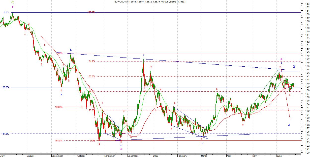 No nie tak miała wyglądać fala (c). Ruch powinien być klarownym impulsem a tymczasem okazał się Zigzagiem abc. To niestety ma dość daleko idące reperkusje w oznaczeniach średnioterminowych. Możliwe bowiem, że fala (b) jeszcze nie została zakończona. Zobaczymy ale jeżeli byki powiedziały „a” to powinny powiedzieć i „b”