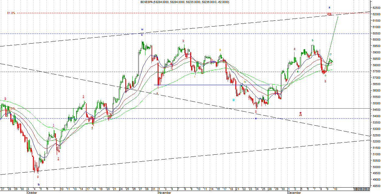 Na BOVESPIE dla v1 komentarz bez zmian. Poprawienie minimów zaneguje wersję byczą. Ruch wzrostowy na razie nie jest impulsem moim zdaniem. Potrzebna jeszcze jedna fala w górę do jego wykończenia.
