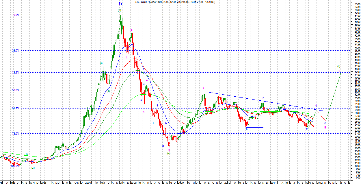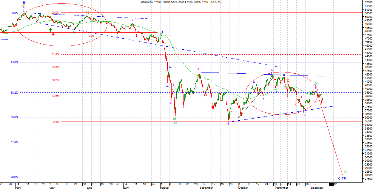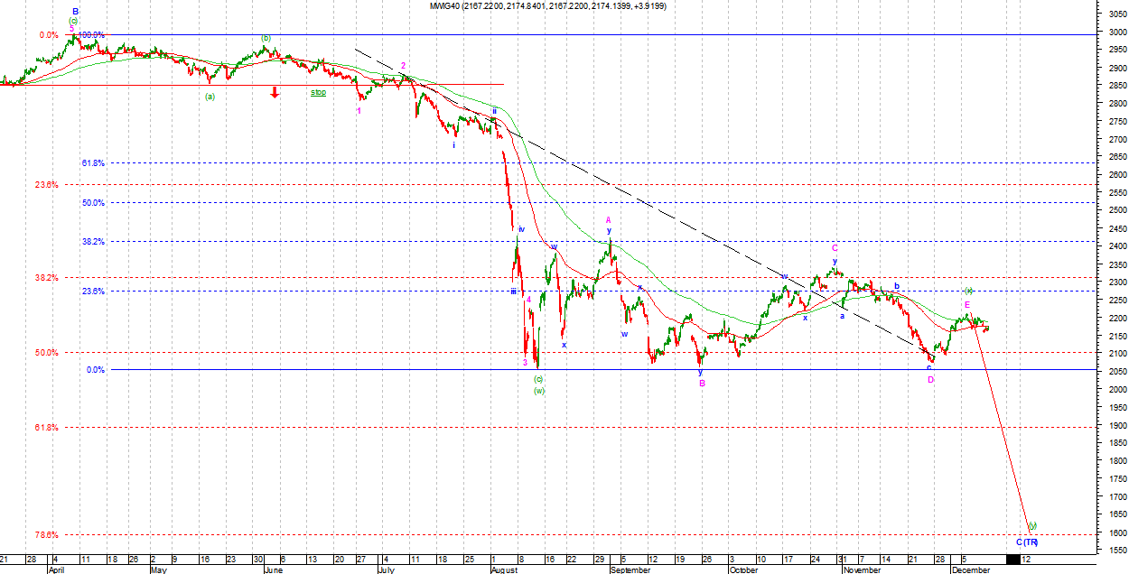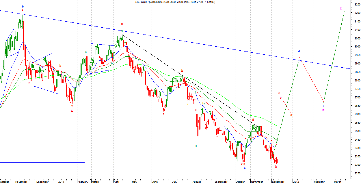 W Szanghaju zejście poniżej minimów jest na razie niewielkie. Neguje jednak hipotezę o impulsie wzrostowym jako podfala a Minuette. Możliwe, że cały ruch abc Minuette jako y będzie strukturą typu Flat ale do tego konieczne jest rozpoczęcie impulsowych wzrostów.