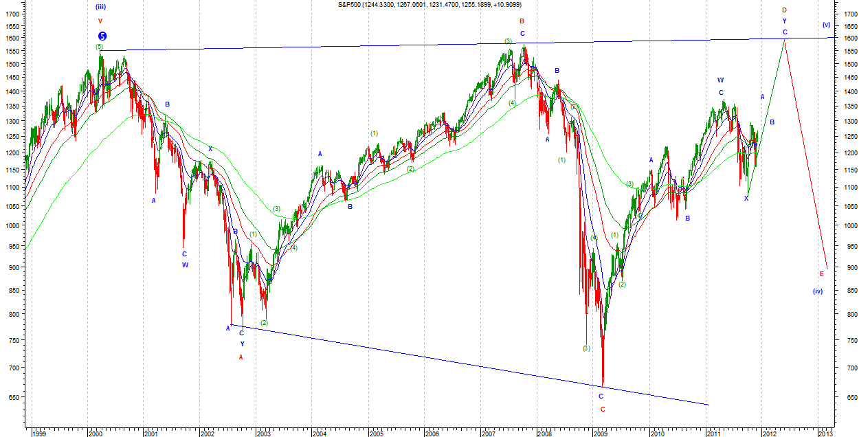 W nowej wersji niedźwiedziej wzrosty są Zigzagiem (a)(b)(c) jako (y) w B Primary. Taki układ możliwy jest na DJIA. Na SP500 nadal możliwe jest kreślenie TR prostokątnego jako B Primary. Układ ten teoretycznie jest możliwy i na DJIA ale fala (c) Intermediate musiałaby być wyjątkowo krótka by nie przekroczyć znacząco szczytu z końca października. Strategia gry zgodnie z v1.