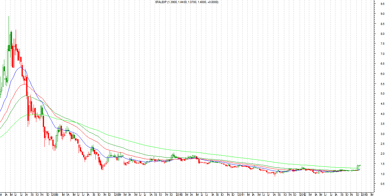 Ewidentny fuck-up. Spółka koniec końców nie zdołała się wybić powyżej średnich i wyleciała na stopie. Cena zakupu pod koniec grudnia 2012 16 PLN, stop loss 12 PLN – strata 25%