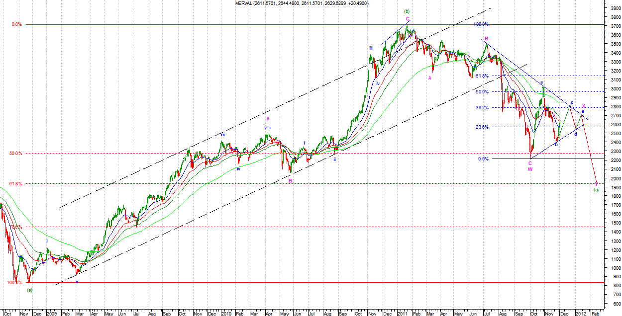 Na MERVALU sytuacja podobna do BOVESPY w krótkim terminie. Jeszcze jedna falka wzrostowa zrobi z podejścia impuls wzrostowy. W wersji byczej będzie to część fali c Minute w X Minor w formie Flat.