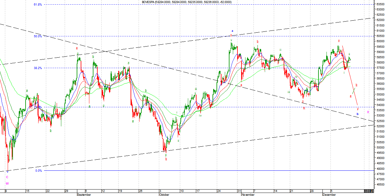 Na BOVESPIE dla v1 komentarz bez zmian. Poprawienie minimów zaneguje wersję byczą. Ruch wzrostowy na razie nie jest impulsem moim zdaniem. Potrzebna jeszcze jedna fala w górę do jego wykończenia.
