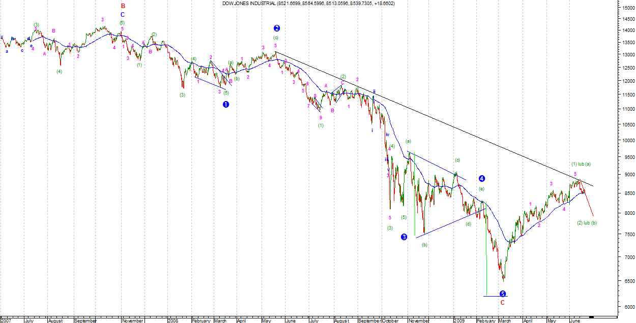 W wersji pierwszej wg mnie mamy pierwszy impuls spadkowy, który oznaczyć można jako i lub a w A Minor. Na razie nie można określić czy ruch rozwinie się w pełny impuls czy pozostanie Zigzagiem.