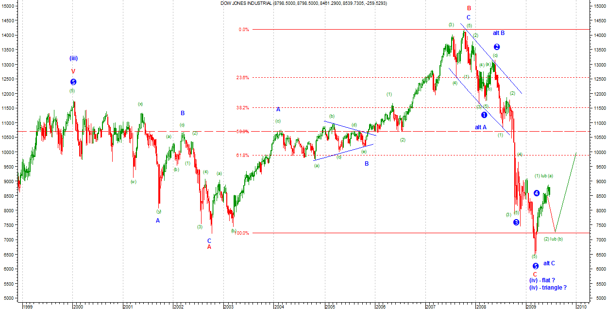 Na wykresie weekly pokazuję alternatywną możliwość zakończenia fali 4 Primary na październikowych dołkach. Przypominam, że wg oznaczeń Bovespa oraz BSE30 znajdują się nadal w hossie. Potwierdzeniem może być relatywna siła obu rynków. Wg alternatywnego oznaczenia fale ABC Minor można by oznaczyć jako 123 Minor a obecne ruchy stanowiłyby podfalę 4 Minor.
