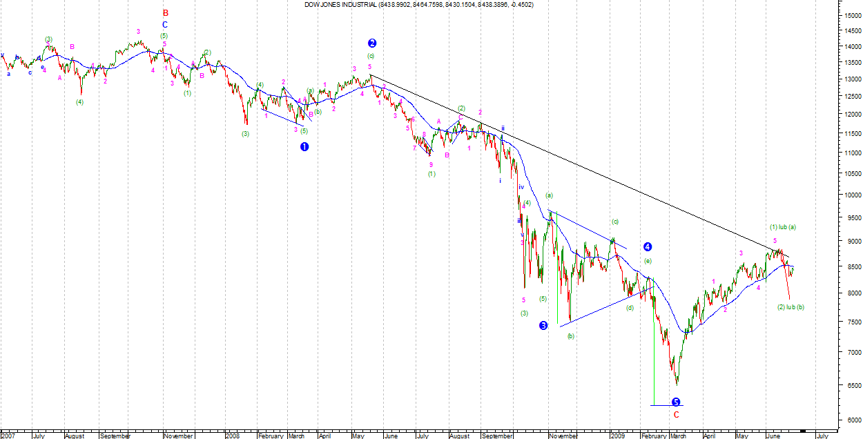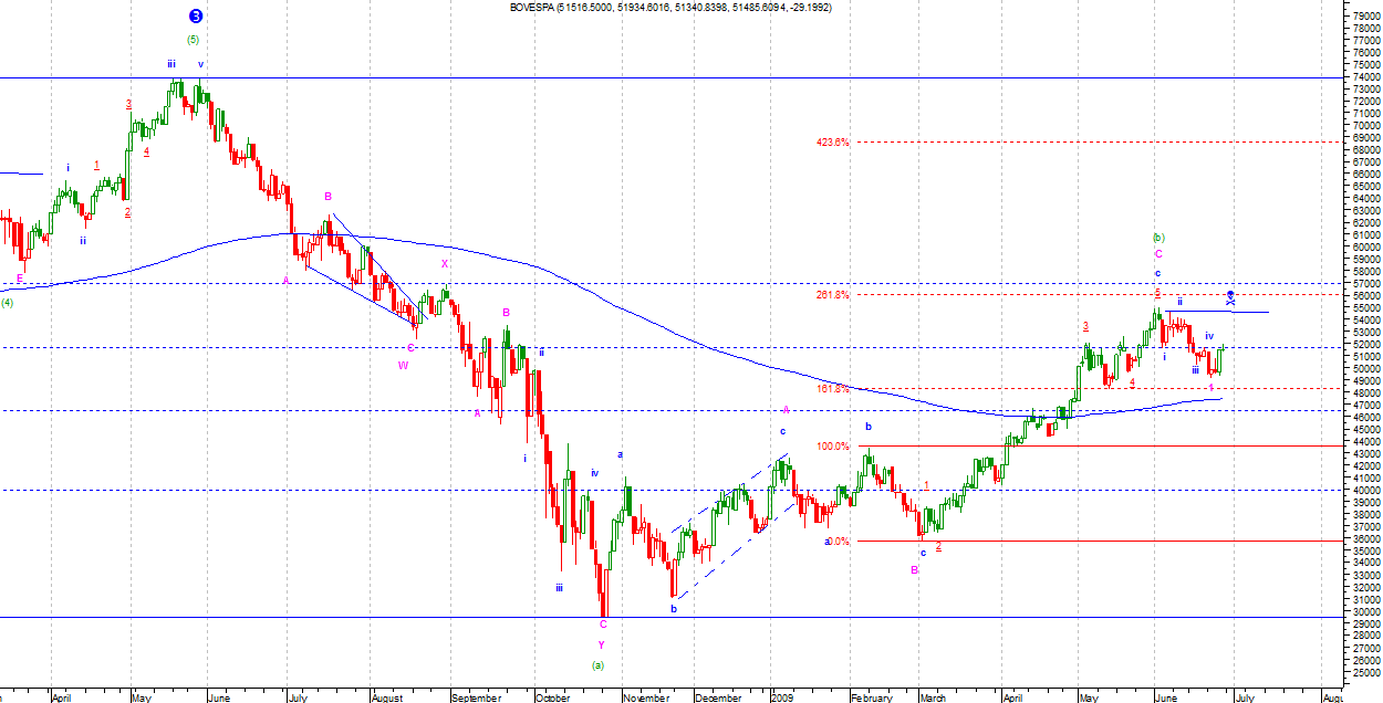 Na Bovespie pierwszy impuls spadkowy zakończony. Na razie nie jestem pewien stopnia fal bo ruch jest relatywnie mały. Z czasem ta kwestia powinna się wyjaśnić.