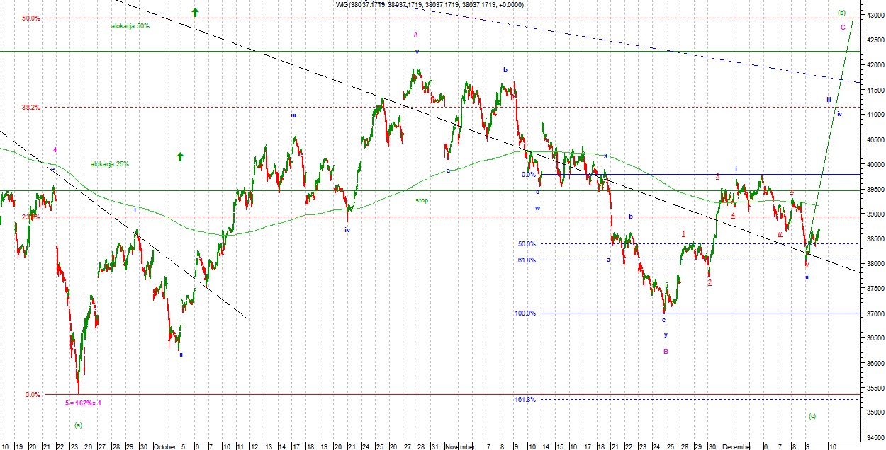 Jeszcze dwa zdania o podfali iv Minute w notacji głównej. Nie jest ona typowa, bo zwykle fale czwarte są falami horyzontalnymi (często trójkątami). Tu mamy odwrotną sytuację. Fala ii Minute może uchodzić za horyzontalną, a czwórka za ostrą. Obie jednak trwały mniej więcej tyle samo czasu więc nie jest bezzasadne oznaczenie obu ruchów tym samym stopniem fal. Oznaczenia z altem wykluczyć jednak nie mogę na tym etapie.