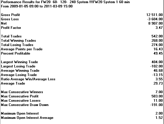 Performance Results for FW20 60- 90- 120 System !!!FW20 System 1 60 min