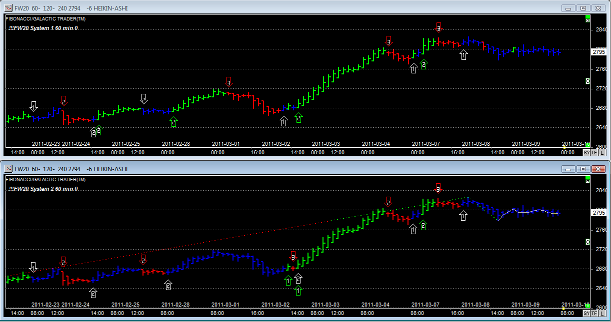 Powodem, dla którego w pakiecie pokazywane są dwa systemy jest to, że zdarzają się przypadki „wysadzania” z pozycji jednego z nich. To dość częsta praktyka na rynkach kapitałowych i zdarza się również i u nas – patrz zagrywki na przekręcanie systemu Pana Rejczaka.