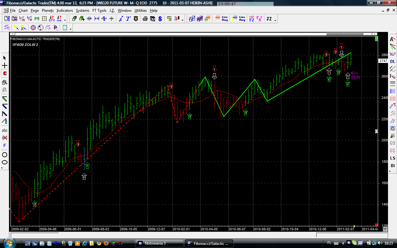 Obecna pozycja długa 2 szt kupiona po 2789 pkt - system twierdzi, że zgodnie z trendem. Zysk od początku publikacji sygnałów: 961 pkt