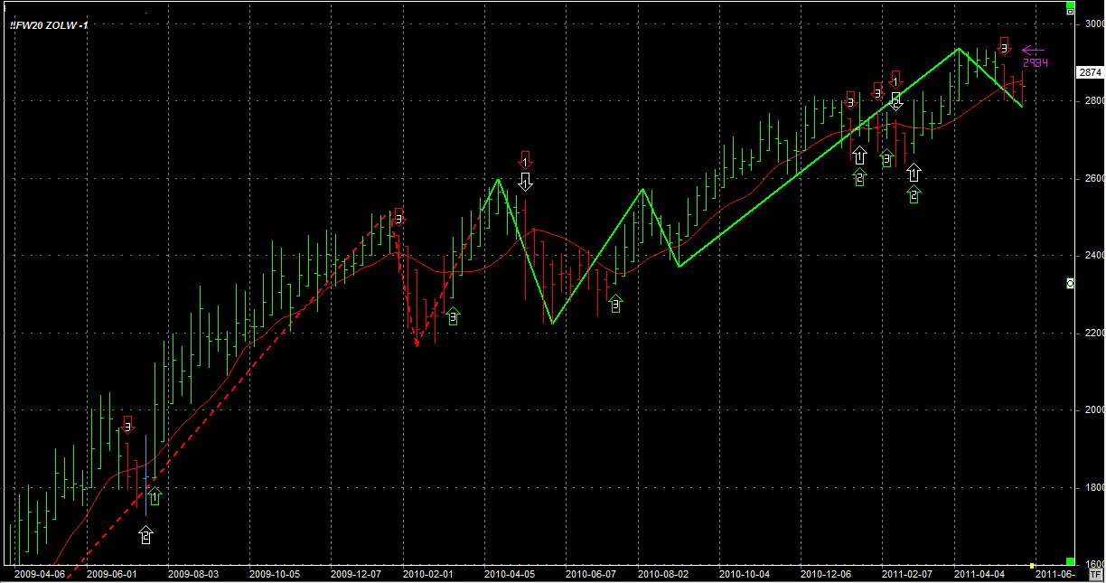 Obecna pozycja krótka 1 szt sprzedana po 2813 pkt - system twierdzi, że przeciw trendowi głównemu. Zysk od początku publikacji sygnałów: 1009 pkt.