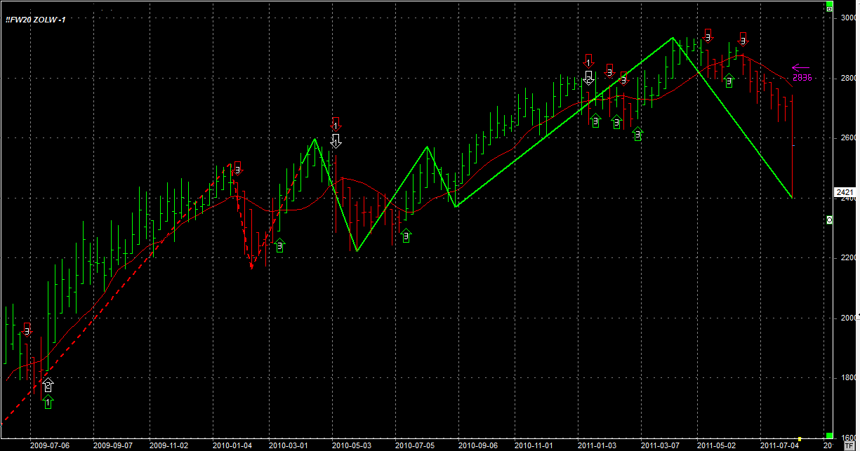 Tydzień zamknął się na poziomie 2421 pkt, 304 pkt ponizej poprzedniego. System Żółw utrzymuje jedną krótką pozycję sprzedaną po 2834 pkt.