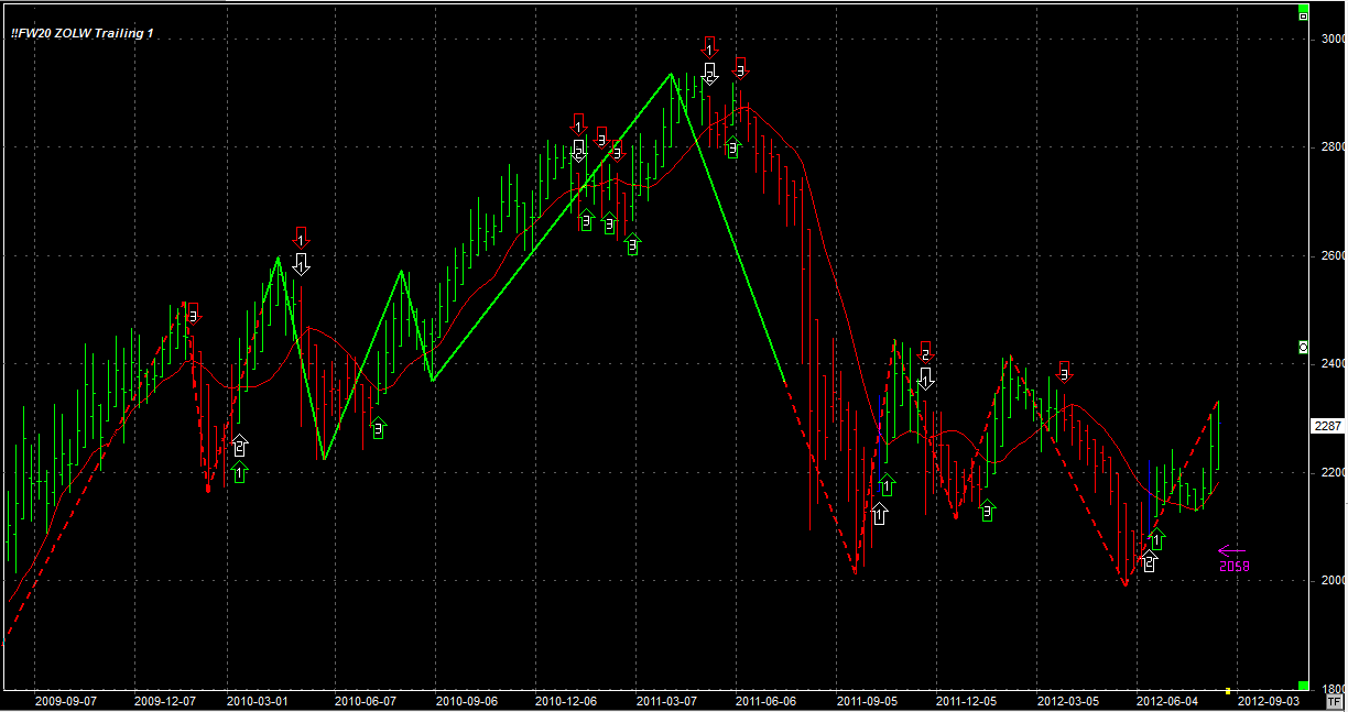 System utrzymuje długą pozycję po 2203 pkt. Stop na 2058 pkt