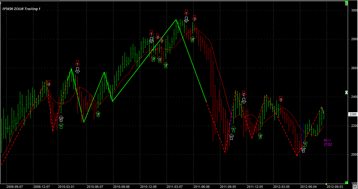 System utrzymuje długą pozycję po 2203 pkt. Stop na 2102 pkt