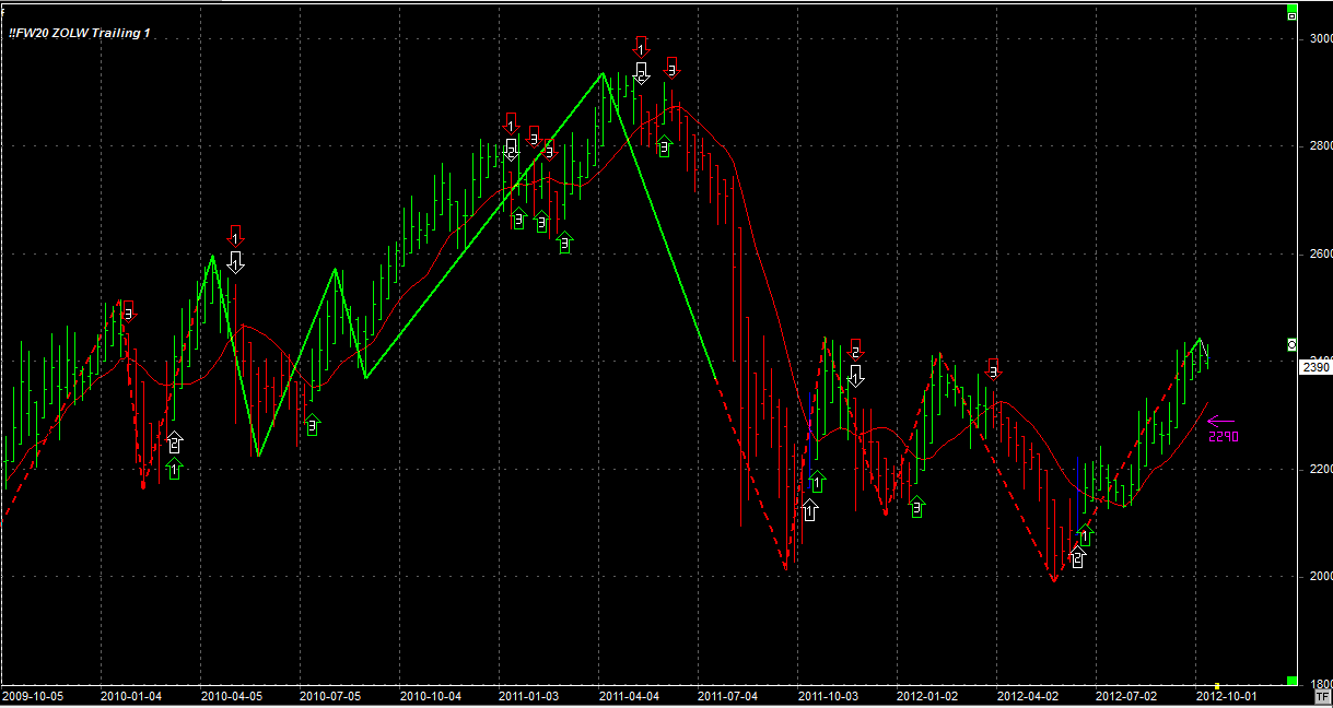 System utrzymuje długą pozycję po 2203 pkt. Stop na 2290 pkt.