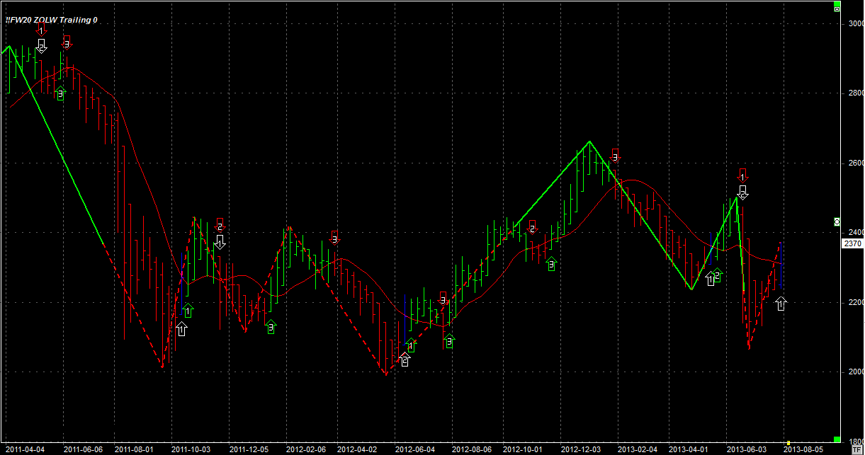 Tydzień zamknął się na poziomie 2370 pkt, 116 pkt wyżej niż tydzień temu. System został wystopowany na poziomie 2352 pkt. Strata z pozycji 1 x 187 pkt. Obecna pozycja neutralna.