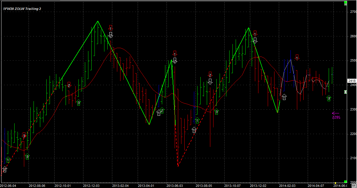 Tydzień zamknął się na poziomie 2418 pkt, 36 pkt niżej niż tydzień temu. System utrzymuje pozycję długą 2 szt, po 2454 pkt. Stop 2285 pkt.