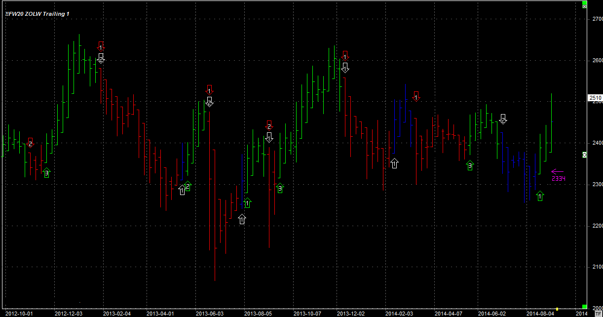 02.07.14 stop loss po 2360 pkt; sztuczna strata 2 x 94 pkt. Poprzednia seria zamknięta z zyskiem 24 pkt;