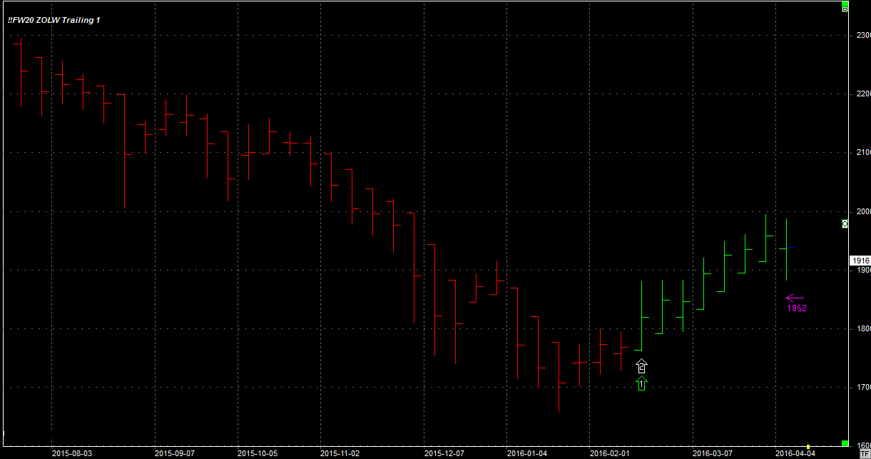 Tydzień zamknął się na poziomie 1916 pkt., 53 pkt. niżej niż tydzień temu. System utrzymuje jedną długą pozycję po 1845 pkt. Stop na poziomie 1852 pkt