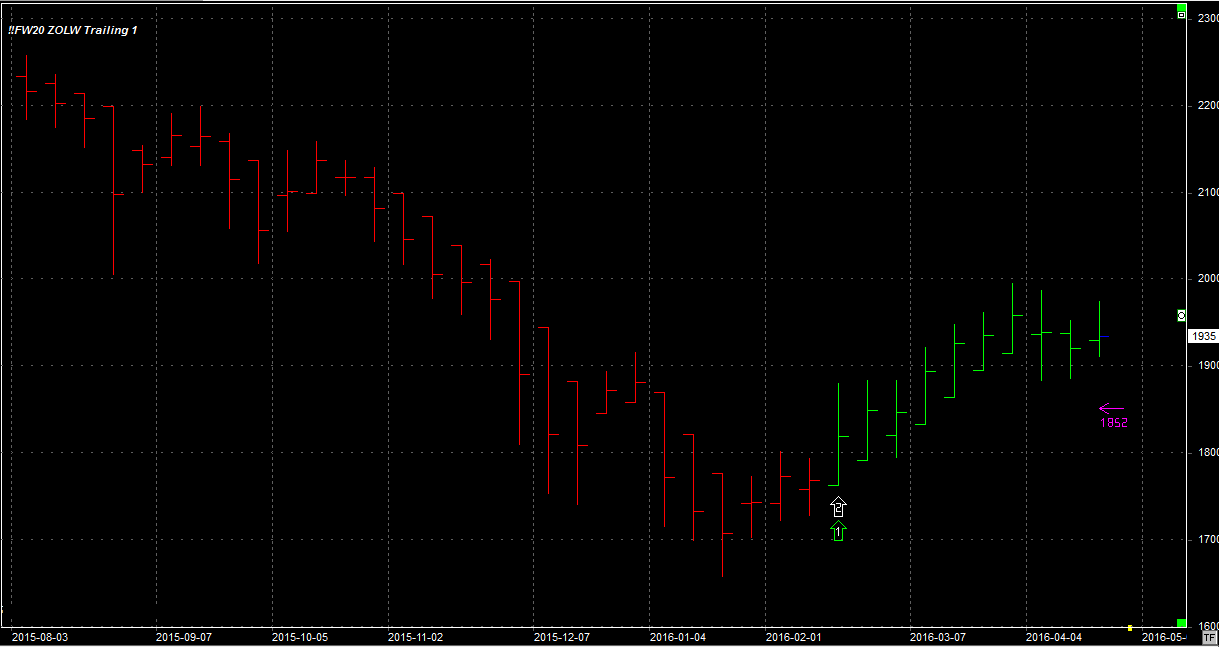 Tydzień zamknął się na poziomie 1935 pkt., 4 pkt. wyżej niż tydzień temu. System utrzymuje jedną długą pozycję po 1845 pkt. Stop na poziomie 1852 pkt
