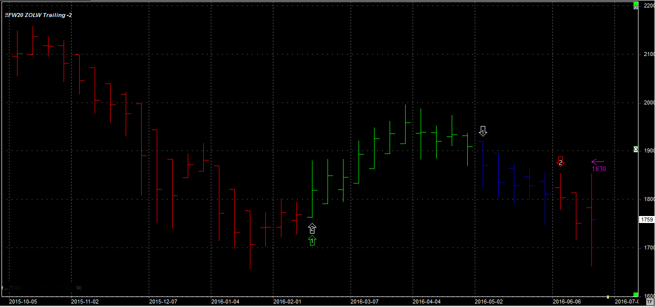 Tydzień zamknął się na poziomie 1759 pkt., 28 pkt. wyżej niż tydzień temu. System utrzymuje 2 krótkie pozycje po 1788 pkt. Stop na poziomie 1870 pkt.