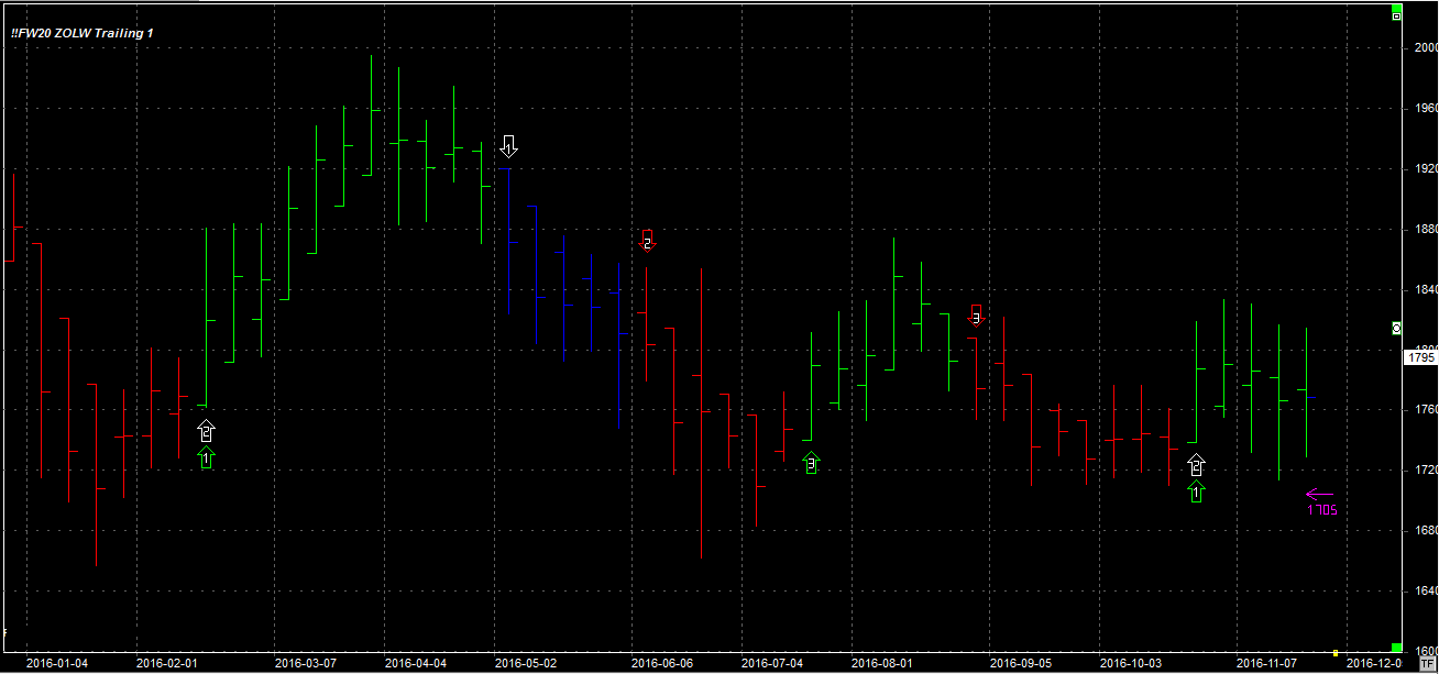 Tydzień zamknął się na poziomie 1795 pkt., 69 pkt. wyżej niż tydzień temu. System utrzymuje pozycję długą 1 szt. na po 1817 pkt. Stop dla pozycji 1705 pkt.