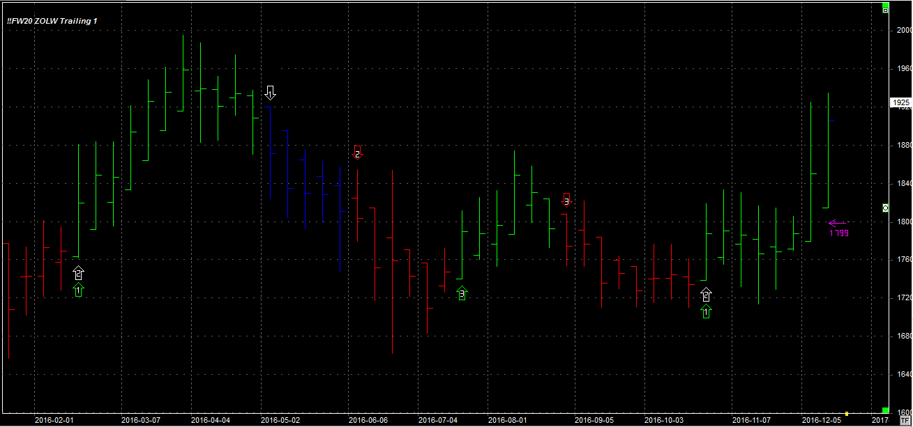 Tydzień zamknął się na poziomie 1925 pkt. (nowa seria), 31 pkt. wyżej niż tydzień temu. System utrzymuje pozycję długą 1 szt. na po 1817 pkt. Stop dla pozycji 1799 pkt.