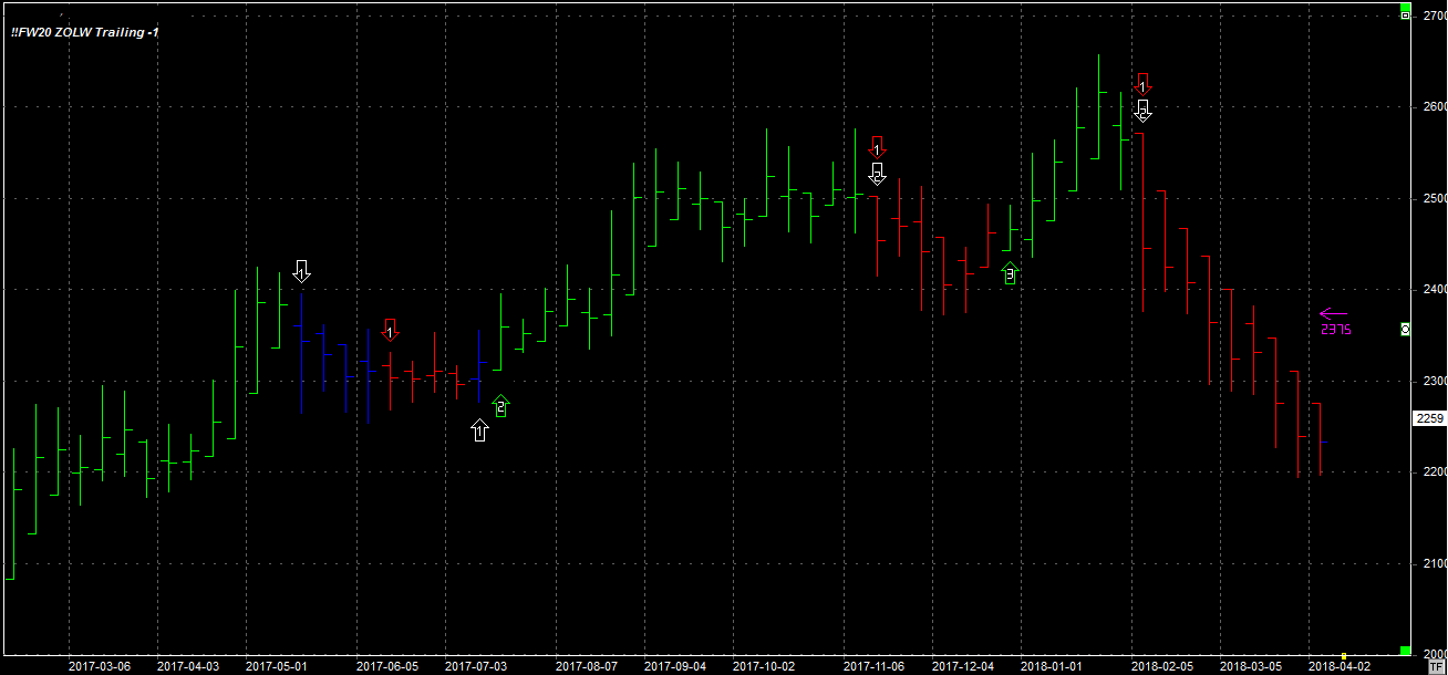 Tydzień zamknął się na poziomie 2259 pkt., 39 pkt. wyżej niż tydzień temu. System utrzymuje pozycję krótką - 1 szt. po 2391 pkt. Stop 2375 pkt.
