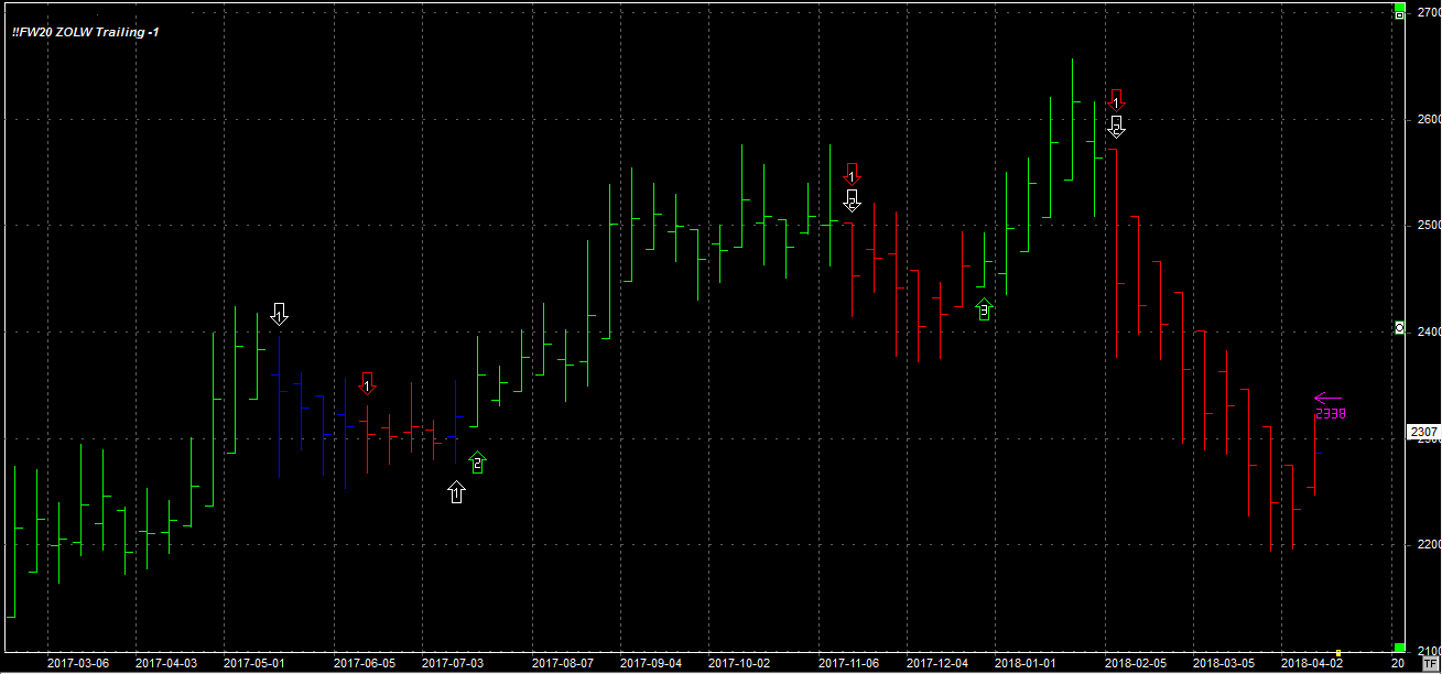 Tydzień zamknął się na poziomie 2307 pkt., 48 pkt. wyżej niż tydzień temu. System utrzymuje pozycję krótką - 1 szt. po 2391 pkt. Stop 2338 pkt.
