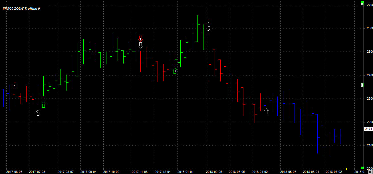 Tydzień zamknął się na poziomie 2171 pkt., 40 pkt. wyżej niż tydzień temu. System w pozycji neutralnej. Niestety musimy poczekać na sygnał kupna, gdyż system nie ponawia wystopowanych pozycji w tym samym kierunku. Do momentu pojawienia się takiego sygnału, system będzie poza rynkiem.