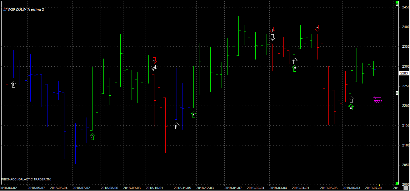 Tydzień zamknął się na poziomie 2283 pkt., 21 pkt. niżej niż tydzień temu. System utrzymuje dwie długie pozycje po 2292 pkt. Stop dla pozycji 2222 pkt.