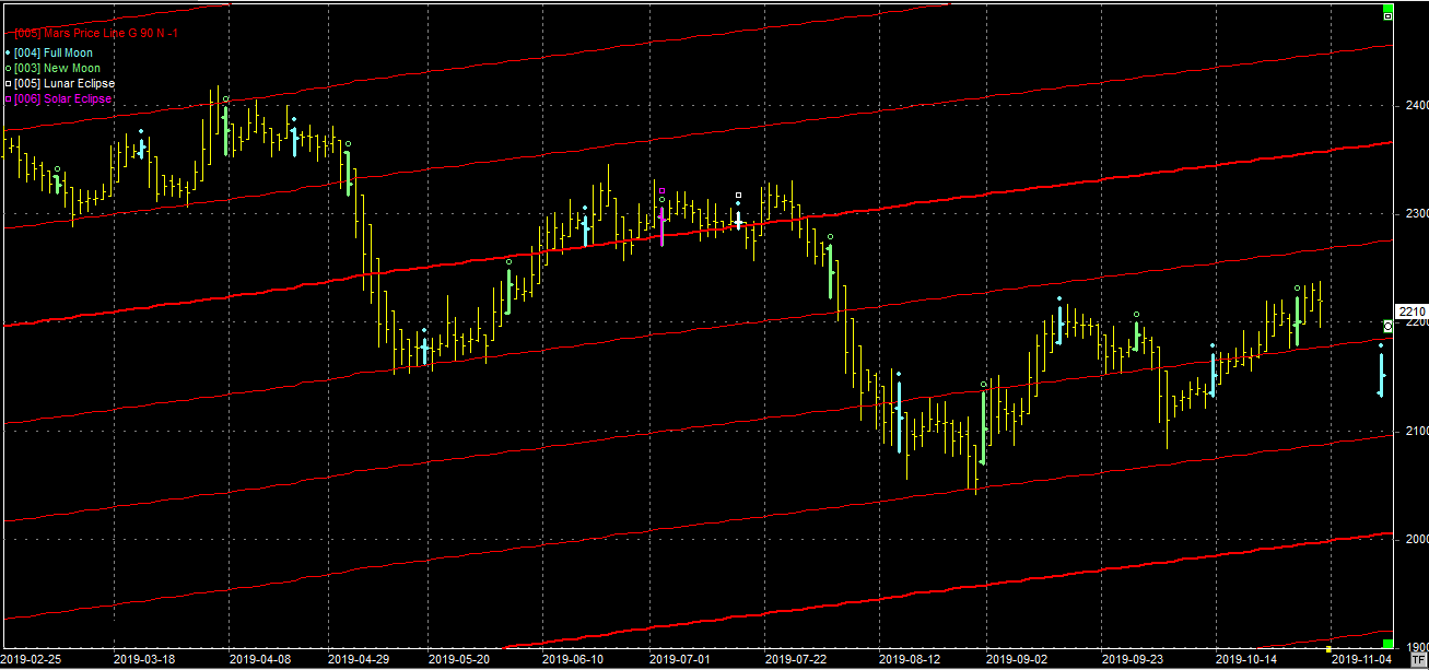 Na wykresie z liniami Marsa można chyba przyjąć, że opór na linii na poziomie 2180 pkt. został przełamany. Obecnie kurs powinien podążać do kolejnego, położonego na poziomie 2270 pkt. Przełamanie tego oporu będzie można uznać za załamanie trendu spadkowego, bowiem na tej linii ustanowiony był przedostatni dołek. Koniec roku tradycyjnie powinien sprzyjać bykom.